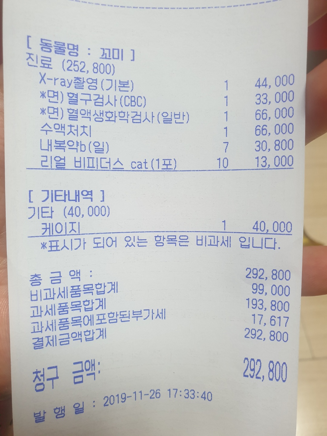 292,800원. 케이지값 사만원 포함이니