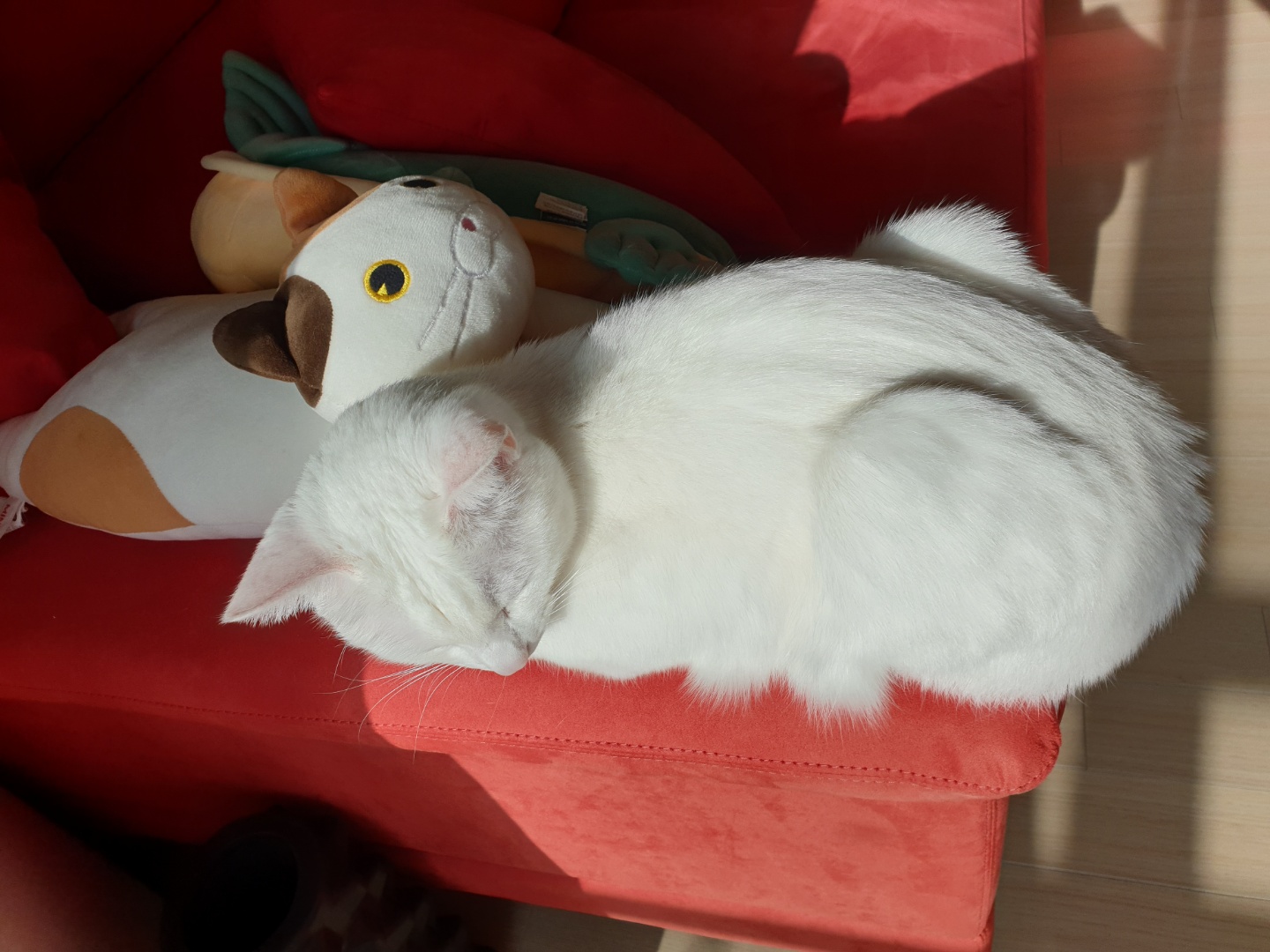 쇼파 바닥쪽으로 거북이 인형을 팽개치고 고양이 인형 옆에 자리잡아서 너무 귀여워서 찰칵.